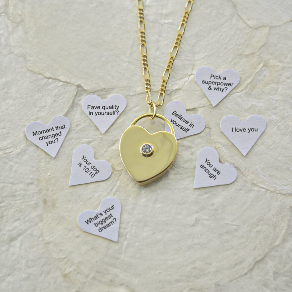 Each locket comes with 25 pre-cut Love Letters - small, thoughtful prompts or compliments you can choose from each day. Slip one into your locket, carry it with you, and when the moment feels right, give it to someone you cross paths with.