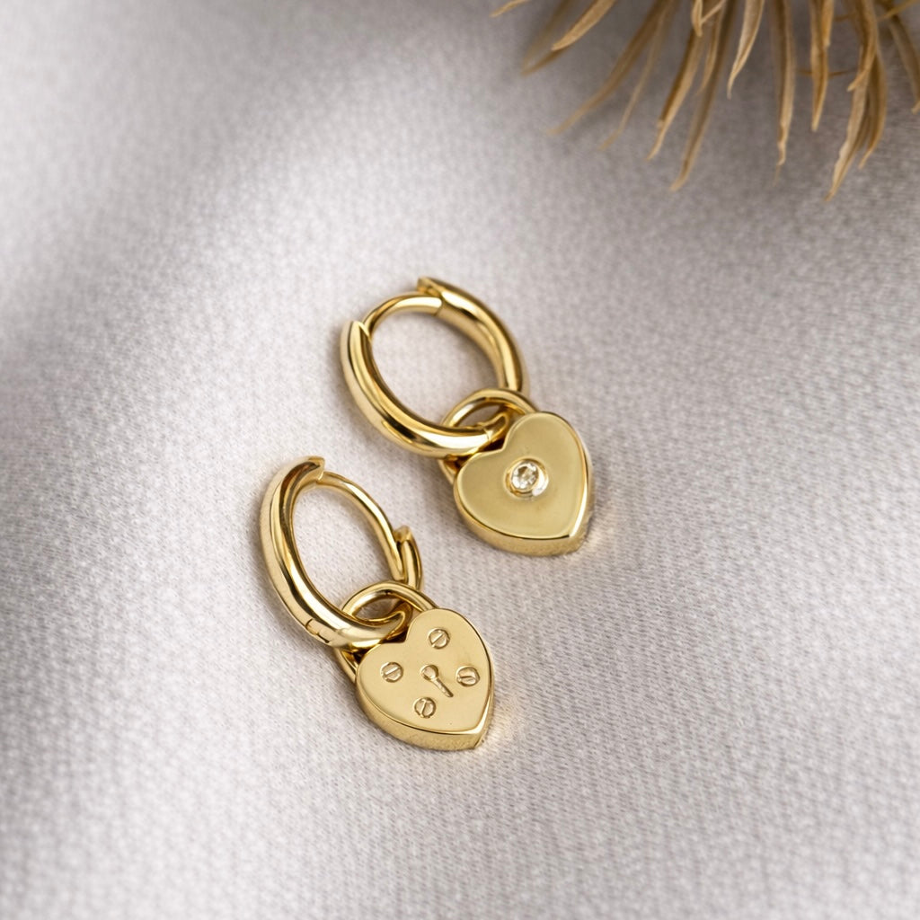 Love Heart Charm Huggies - Gold (double-sided)
