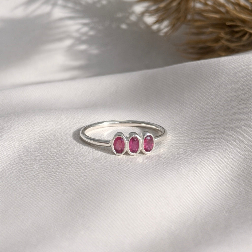 Tripple Ruby Ring - Silver